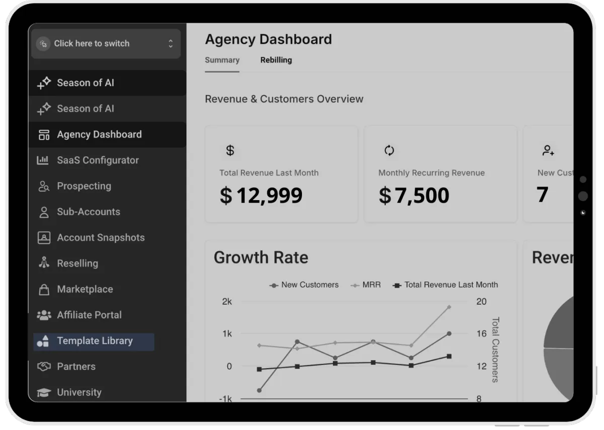 No necesitas complicarte con lo técnico. Creamos tu propio software en Go High Level, para que atraigas, conviertas y fidelices clientes con tu marca, generando ingresos mes tras mes.